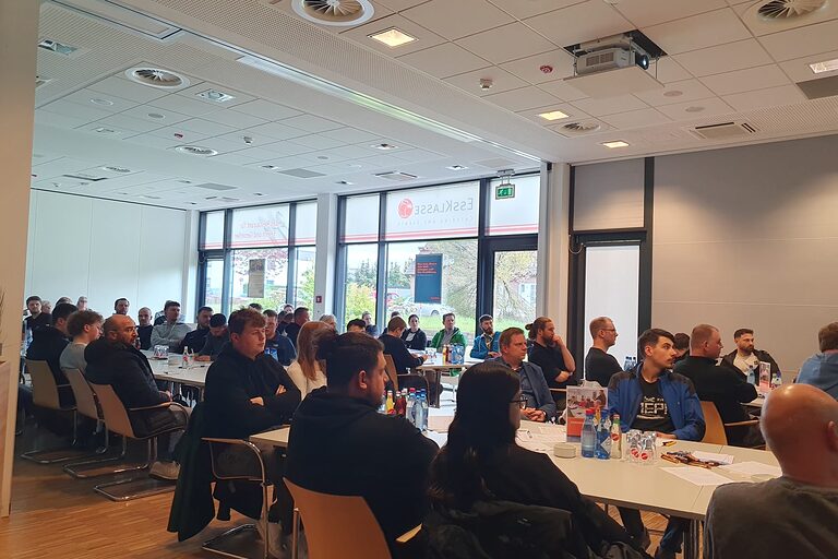 Die Teilnehmerinnen und Teilnehmer des Infoabends konnten sich in den verschiedenen Gewerken, wie Kfz, Elektro, SHK, Maler und Lackierer, Maurer, Fliesenleger, Zimmerer sowie im kaufmännischen Bereich gezielt über ihre Meisterkursvorbereitung informieren. Sie erhielten Einblicke in Zulassungsvoraussetzungen, Lehrgangsstruktur und Finanzierungsmöglichkeiten. "Im SHK-Bereich haben wir seit Kurzem einen Einstiegstest eingeführt. Sie können bei diesem nicht durchfallen. Sie sollen sich dabei vielmehr reflektieren und damit die Frage beantworten: Bin ich bereit für die Meisterprüfung? Denn als Meister meines Fachs ist es entscheidend, zu wissen, was man tut", erklärt Preßler. Der Einstiegstest soll zukünftig auch in andere Gewerke ausgeweitet werden.