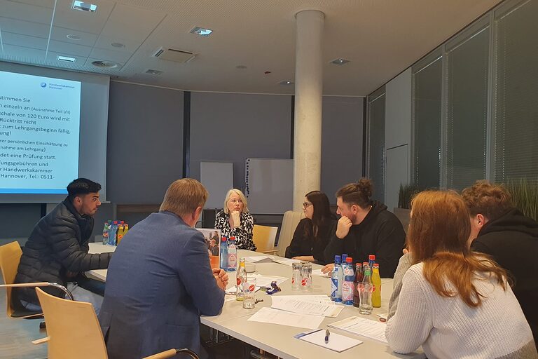 Hannover (ak). – "Herzlich willkommen zum Meister-Infoabend auf dem Campus Handwerk", begrüßte Michael Preßler, Abteilungsleiter des Förderungs- und Bildungszentrums, die über 50 interessierten Teilnehmerinnen und Teilnehmer. "Als angehende Meisterinnen und Meister stehen Ihnen hervorragende Perspektiven im Handwerk bevor", betonte er. "Um Ihnen die bestmögliche Flexibilität für Ihre Weiterbildung zu bieten, haben wir unsere Vorbereitungskurse zehnmal im Jahr in verschiedenen Formaten im Angebot: ob Vollzeit, Teilzeit oder im Rahmen von blended learning."