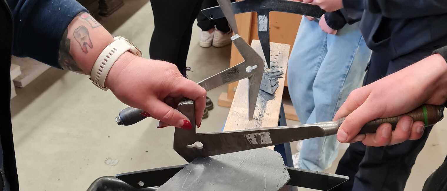 Hannover.- (mk) Schieferplatten statt Stifte, hydraulische Rohrpresszange statt Heft: An drei Tagen drückten junge Mädchen aus Hannover mal nicht die Schulbank, sondern formten Herzen und Kerzenständer aus Handwerksmaterialien.